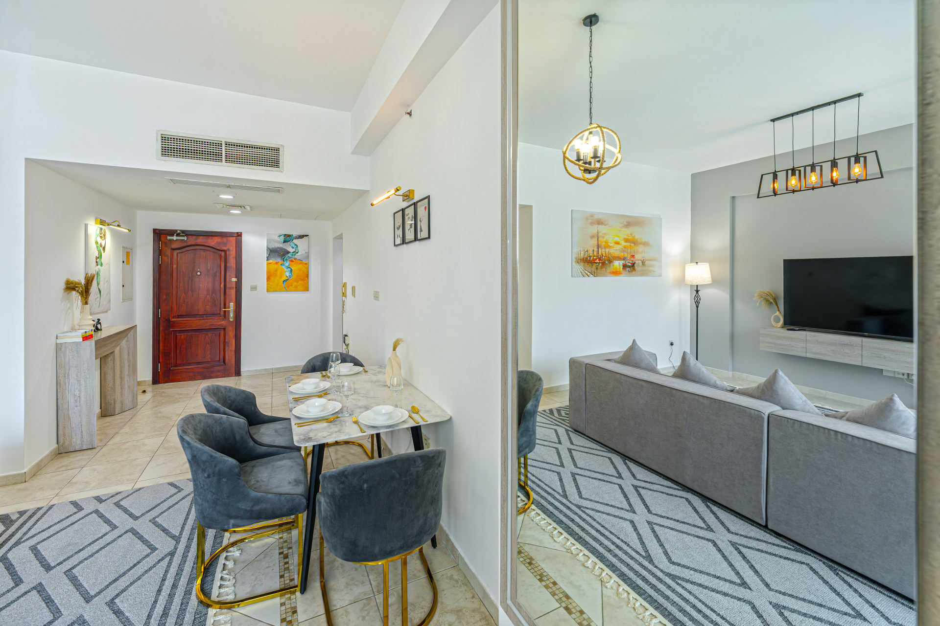 Wake up to calming water views in this modern, stylish 2-bedroom apartment located in the heart of Dubai Marina. Whether you’re here for work or vacation, this fully furnished space offers everything you need — from a cozy balcony with marina views, to high-speed Wi-Fi, and smart TV for relaxing nights in.